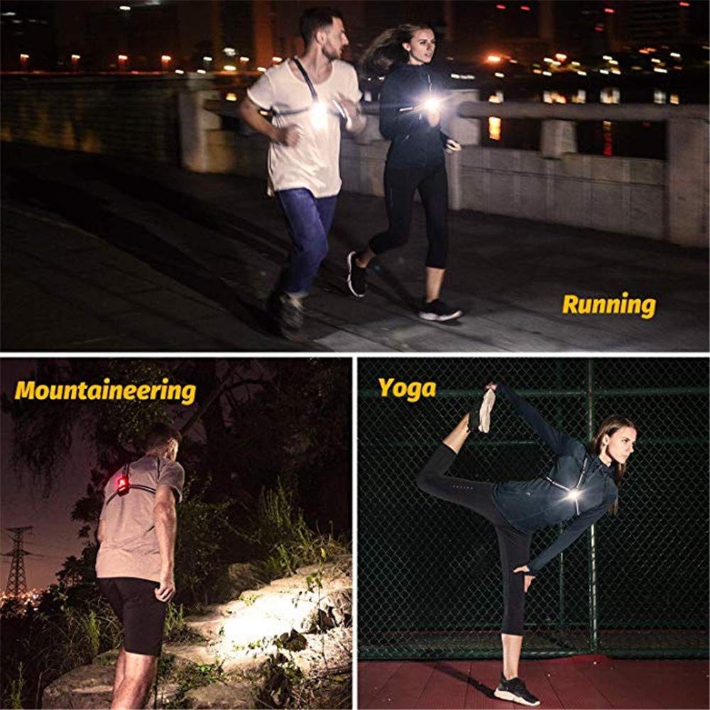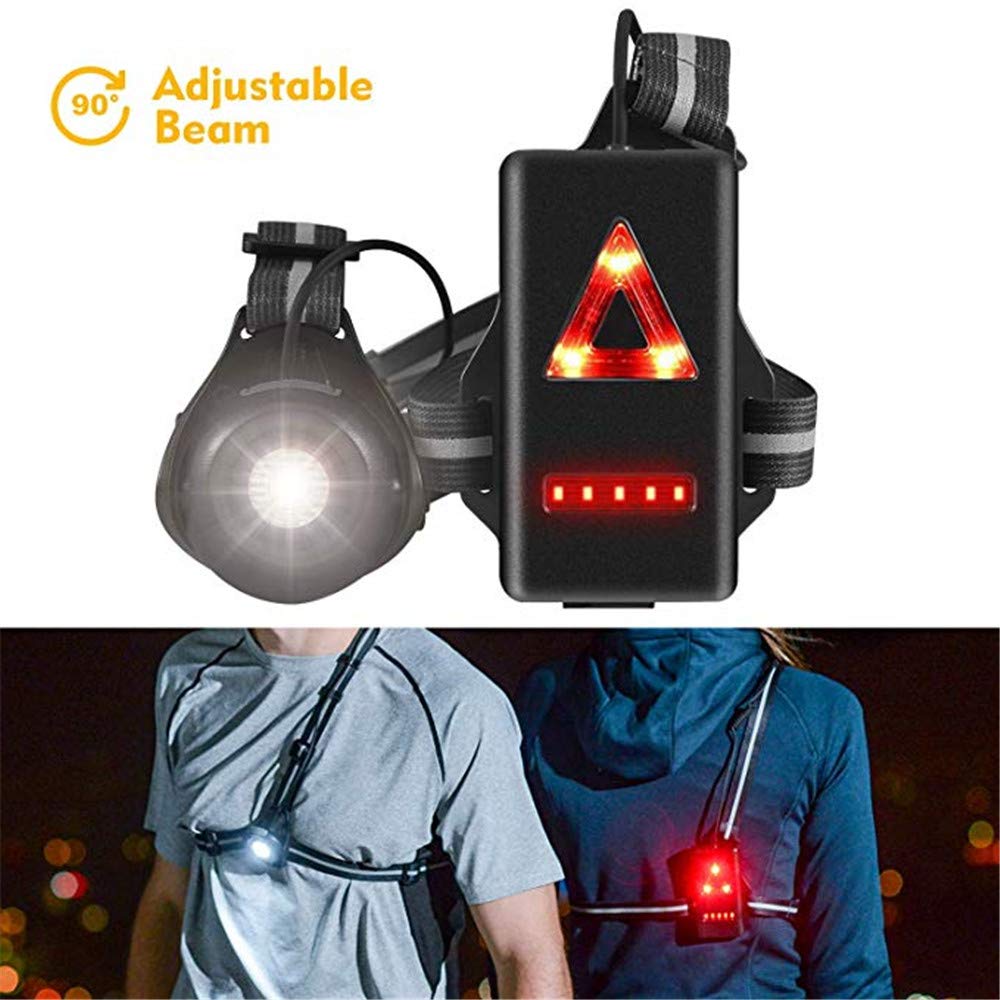 WOTR Luces de Marcha Nocturna Luz de Marcha en el Pecho al Aire Libre, luz Delantera de Haz Ajustable y Luces de Advertencia de Seguridad traseras visibles LED Intermitentes para Correr, Trotar